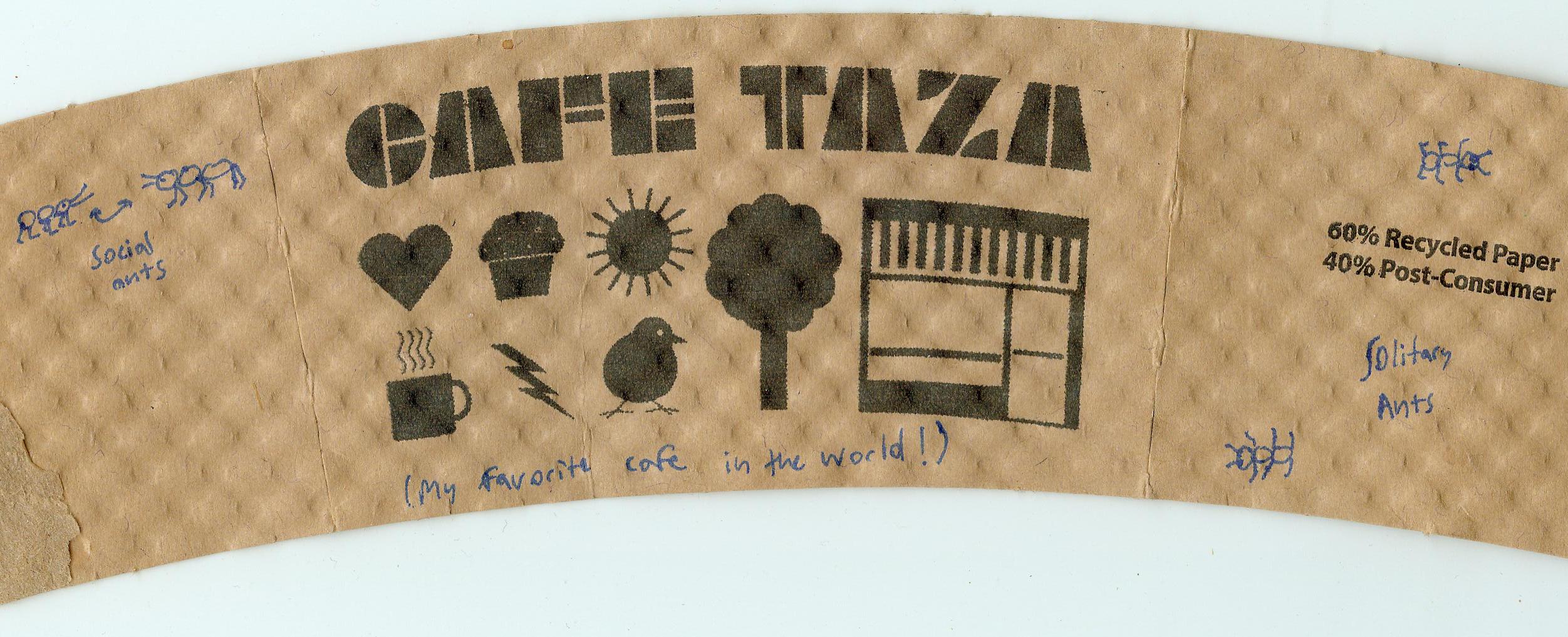 Cafe Taza, Buffalo NY. Seats 6 (10 when the weather’s nice and you can sit outside). When there, you have to socialize, it’s a cafe for social ants.