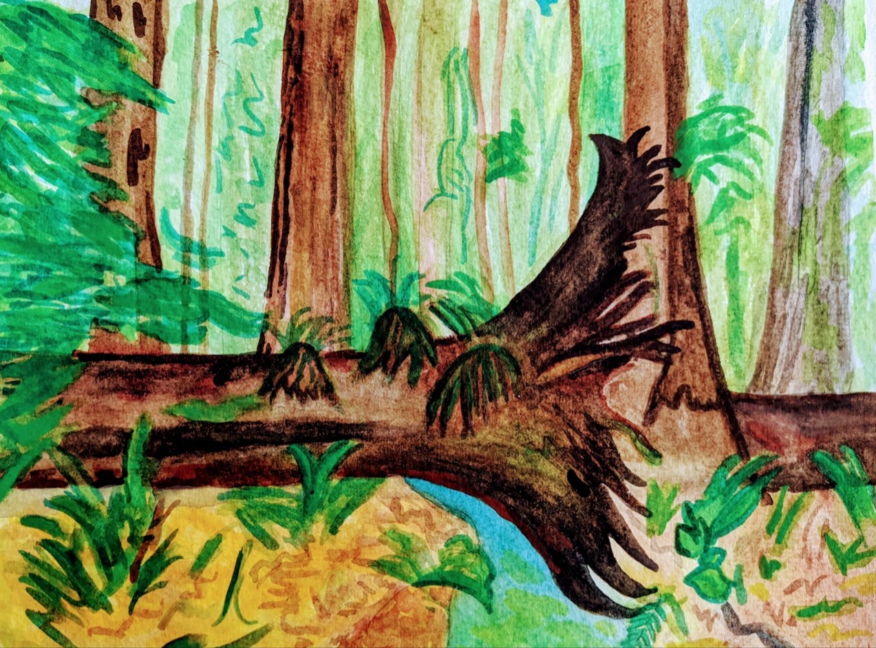 Near the path, one of the tall maples has fallen. It is early spring, so the crimped maroon flowers are just emerging. Here and there slabs of the bark have exploded away in the impact of its landing. But, mostly, it lies as it stood, though not such a net for the wind as it was. What is it now? What does it signify? Not Indolence, surely, but something, all the same, that balances with Ambition.