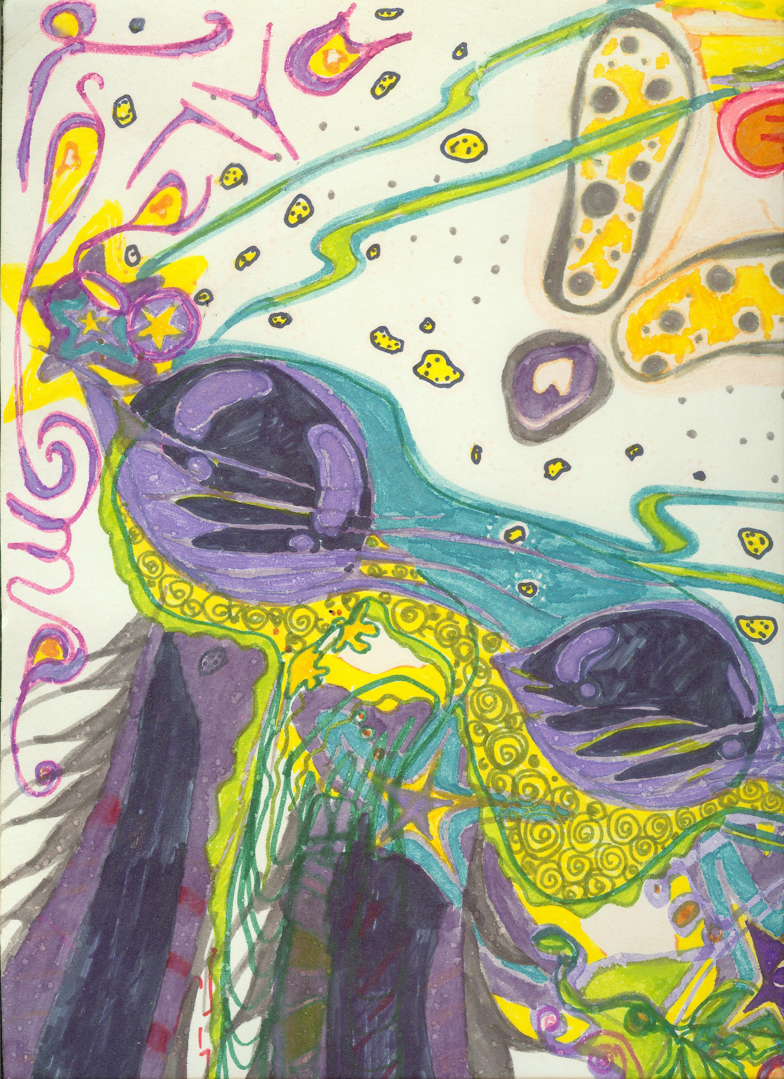Some guest art from my penpal Kamara based on a night hanging out by a campfire with super bright stars. The chairs looked so cute together. We also ate apples and peanut butter.